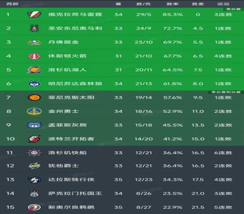 NBA最新积分榜